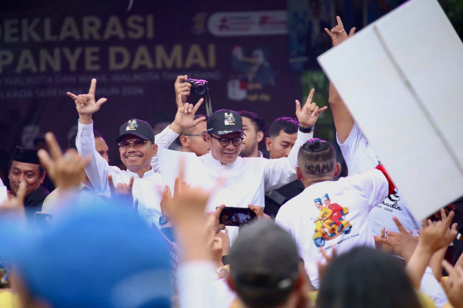 Usai mendapat nomor urut dalam tahapan pemilihan calon kepala daerah (cakada) 2024 Kota Tangerang, pasangan calon (paslon) Wali Kota dan wakil Wali Kota Tangerang, Sachrudin-Maryono mengikuti Deklarasi Kampanye Pilkada Damai 2024.