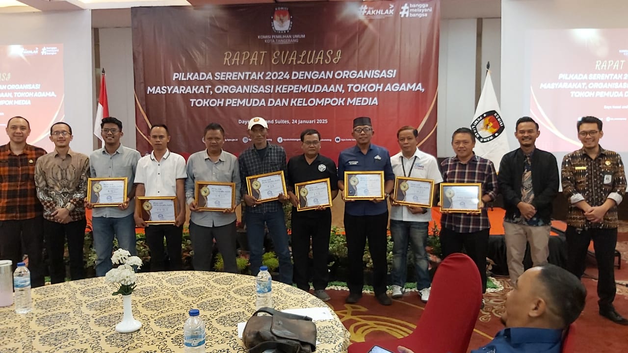 Komisi Pemilihan Umum (KPU) Kota Tangerang mengundang Organisasi Masyarakat, Organisasi Kepemudaan, Tokoh Agama, Tokoh Pemuda dan Kelompok Media untuk melakukan Rapat Evaluasi Penyelenggaraan Pilkada 2024 di Hotel Days Suite Tangerang, Jumat (24/01/25 )
