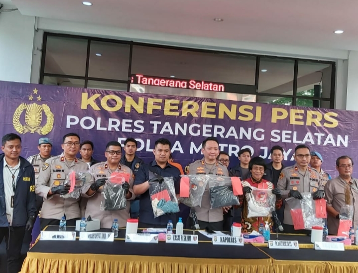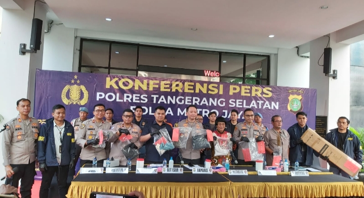 Polres Tangerang Selatan berhasil mengungkap kasus tindak pidana kekerasan yang terjadi di wilayah hukum, Polsek Ciputat Timur Tangerang. Kapolres Tangerang Selatan AKBP Victor Daniel Henry Inkiriwang, S.H., S.I.K., M.Si., didampingi Wakapolres, Kasat Reskrim, serta Kapolsek Ciputat Timur dan Polsek Curug, didampingi pula oleh Kasie Humas, Kak Seto, dan Ketua PPATK Kota Tangerang Selatan, memberikan keterangan resmi terkait kasus tersebut, Jum’at sore 08 Agustus 2025.